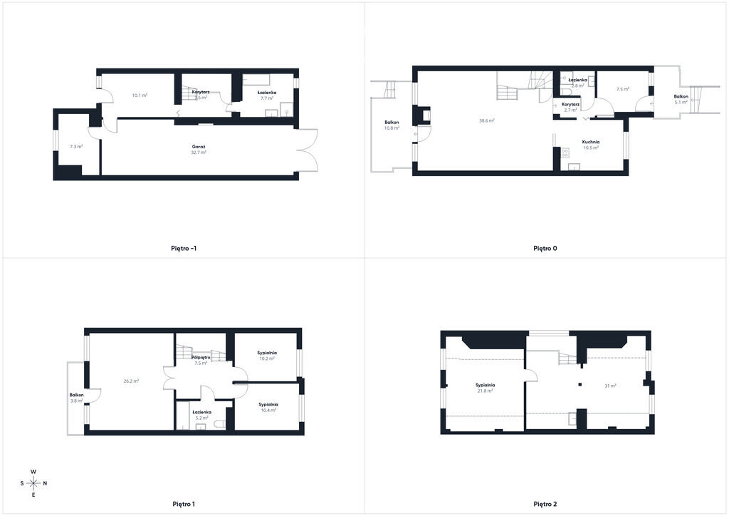 południe), łazienka z WC oraz balkonNa parterze: duży salon 38,6